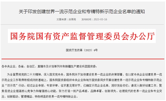 中國粉體網訊 為全面貫徹黨的二十大精神,深入落實黨中央、國務院關于加快建設世界一流企業的決策部署,國務院國資委組織中央企業和地方國資委同步開展創建世界一流示范企業和專精特新示范企業“雙示范”行動。近日,已確定示范企業名單公布,有3家先進陶瓷相關企業入選“創建世界一流專精特新示范企業”。