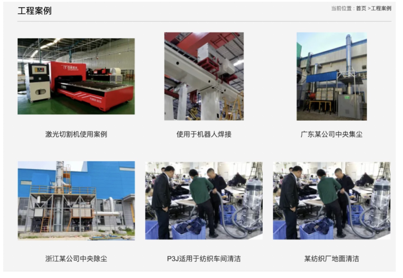特別適用:設備配套、激光加工作業、精細粉塵作業、食品醫藥行業、半導體、電子行業、銑削、雕刻作業。