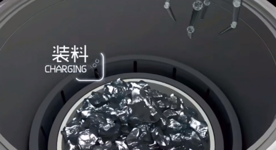 首先,將高純多晶硅料粉碎至適當(dāng)?shù)拇笮。⒃谙跛岷蜌浞岬幕旌先芤褐星逑赐獗砻妫猿タ赡艿慕饘俚入s質(zhì),然后放入高純度石英坩堝內(nèi)。