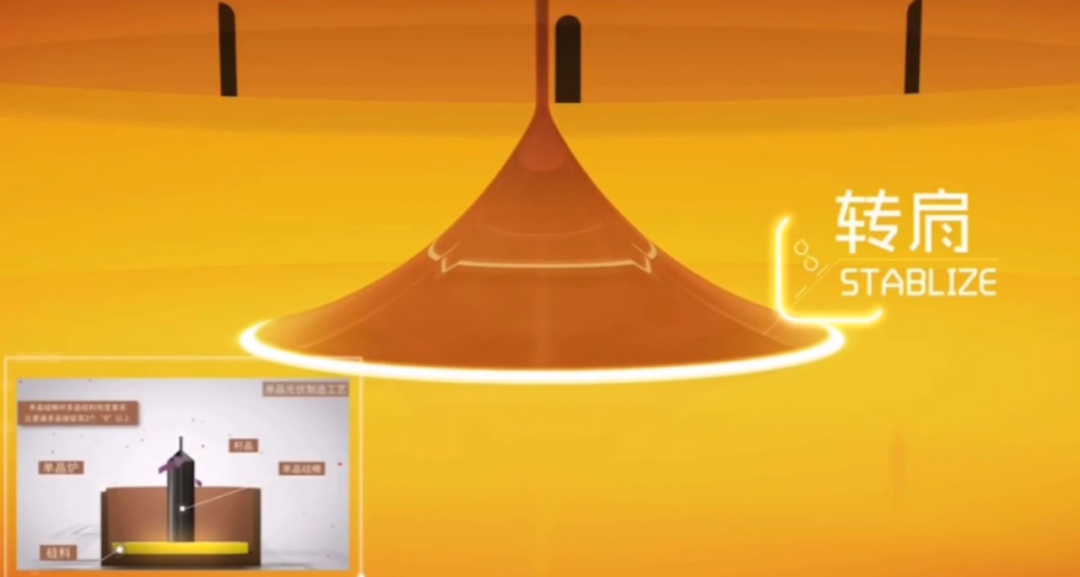 放肩至目標(biāo)直徑后,需要快速使晶體生長(zhǎng)方向從橫向轉(zhuǎn)為縱向,提高拉速,晶體停止橫向生長(zhǎng),直徑不再增加時(shí),即完成轉(zhuǎn)肩。