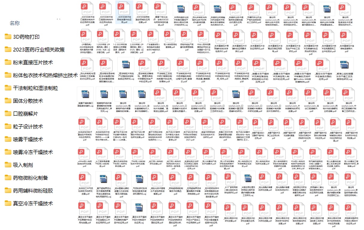 小編整理了部分醫藥相關資料,包含壓片技術、干法制粒、噴霧干燥、吸入制劑、醫藥相關政策等。