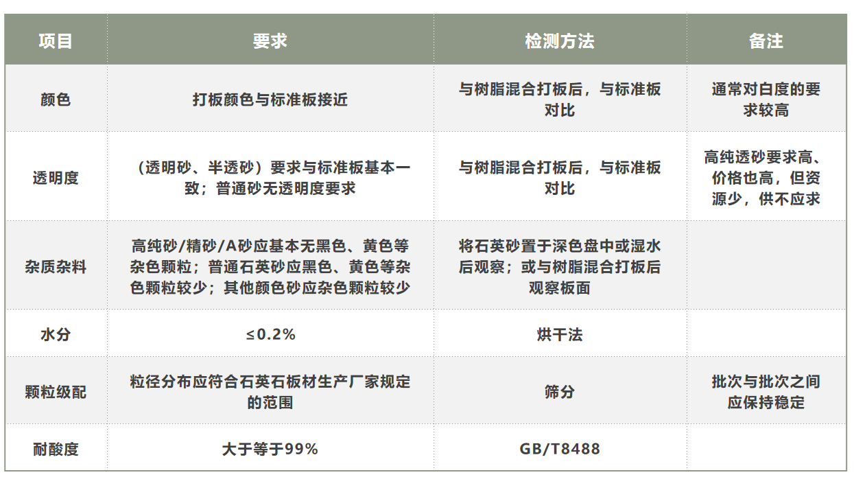除此之外,石英砂的透度、白度,以及石英砂的品級對石英石板材的質量都具有非常重要的影響。