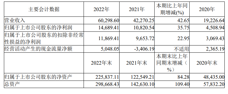 中國粉體網訊 3月30日,壹石通發布2022年年度報告,2022年公司實現營業收入 6.03 億元,同比增長 42.65%;實現凈利潤1.47億元,同比增長35.75%。