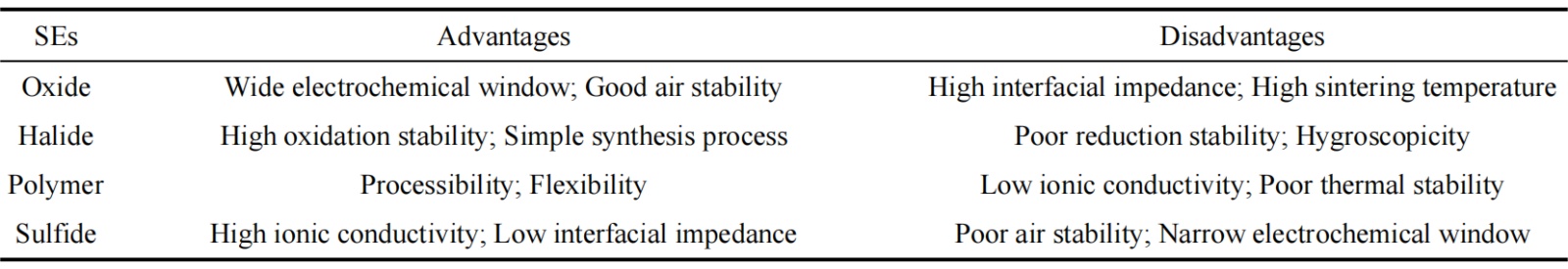 氧化物、鹵化物、聚合物和硫化物固態電解質的優缺點(來源:賈政剛等,《固態鋰硫電池中硫化物固態電解質的研究現狀》)