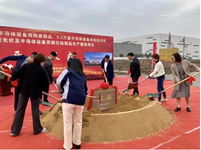 據了解,該項目于2022年11月落戶海鹽,投資1.5億元,用地面積約21畝,將形成40萬套光伏及半導體設備用陶瓷制品、3.5萬套半導體設備用純硅夾具、0.5萬套光伏及半導體設備用碳化硅制品的生產能力,主要服務于光伏設備、半導體設備、精密電子設備、機床等領域設備公司。項目計劃2025年年初正式投產,達產后可實現銷售額2億元。