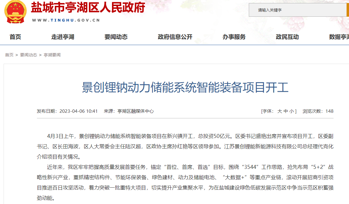 4月8日,浙江青鈉科技有限公司年產10GWh鈉離子大圓柱電池建設項目在長三角(湖州)產業合作區開工。該項目總投資20億,一期新建5GWh鈉離子電池生產線,達產后預計可實現年產值30億元,利潤3.2億元,稅收1.6億元。該項目中試線也于當天投用,首款0.1GWh鈉離子大圓柱電池中試產品下線。