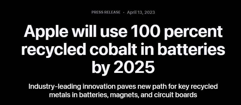 到2025年,實現在所有蘋果設計的電池中使用100%再生鈷;