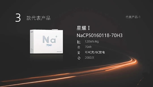 星耀I、星耀II采用方形形態;星源采用圓柱形態。其中,星耀I容量為70Ah,能量密度為120Wh/kg,可實現4C充電、6C放電,循環次數超2000次;星耀II容量為80Ah,能量密度為135Wh/kg,循環次數超過3000次;星源能量密度120Wh/kg,循環次數2000次。