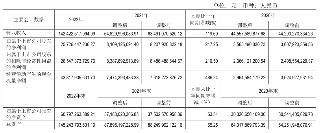 通威股份2020-2022年主要會(huì)計(jì)數(shù)據(jù)