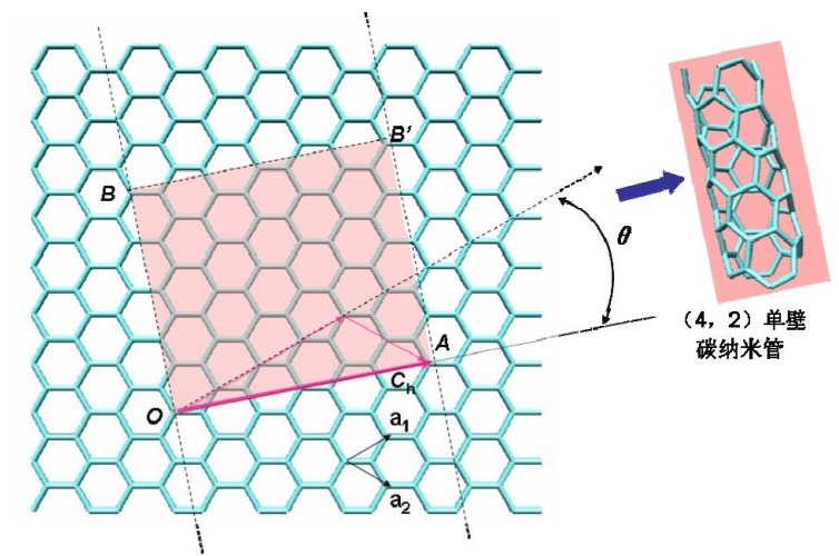眾所周知,碳納米管(CNT)和石墨烯擁有超高的相似程度,如果我們將單層石墨烯進行一定角度的彎曲,從示意圖上就可以看成是SWNTs。SWNTs擁有極小的直徑,范圍在0.6-2nm之間,最小的直徑可達到0.4nm左右。