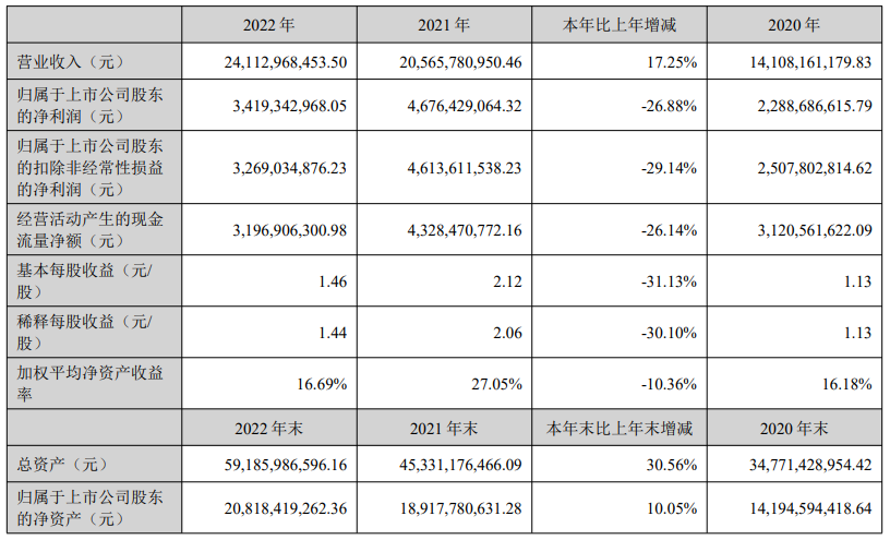 中國(guó)粉體網(wǎng)訊 4月28日,龍佰集團(tuán)披露2022年年度報(bào)告和2023年一季報(bào)。2022年,實(shí)現(xiàn)營(yíng)收241.55億元,同比增長(zhǎng)17.16%;實(shí)現(xiàn)歸屬于上市公司股東的凈利潤(rùn)34.19億元,同比下降26.88%。