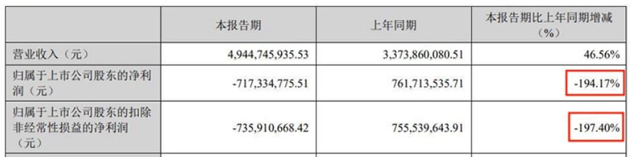 4月28日,磷酸鐵鋰龍頭企業德方納米(300769.SZ)發布的業績報告顯示,該公司今年一季度歸屬于上市公司股東的凈利潤虧損7.17億元,同比下降194.17%,由盈轉虧;歸屬于上市公司股東的扣非凈利潤虧損7.36億元,同比下降197.40%。