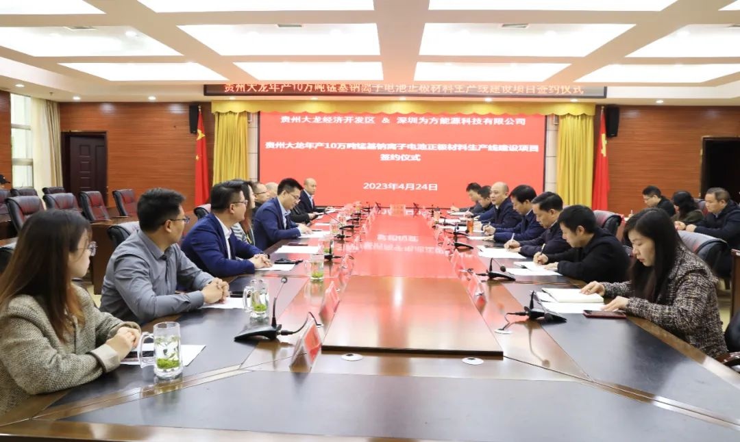 4月24日深圳為方能源科技有限公司與貴州大龍開發區簽約。此次簽約主要建設錳基鈉離子電池材料生產線及相關配套設施。