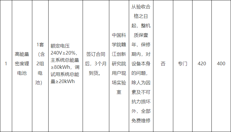項目名稱:中國科學院贛江創新研究院高能量密度鋰電池采購項目