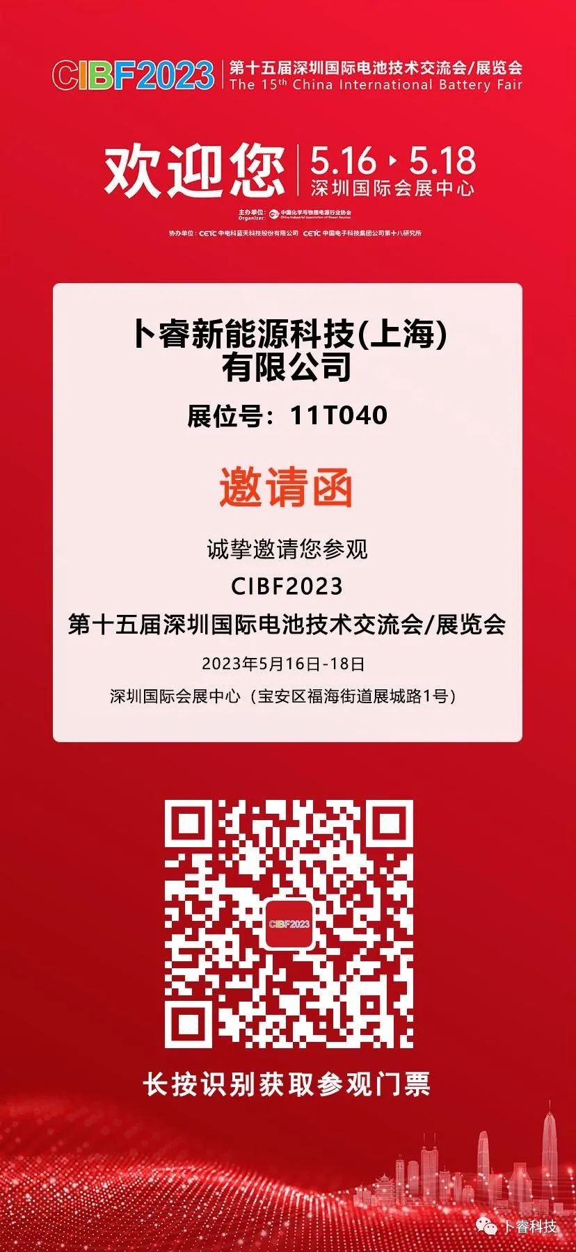 CIBF2023第十五屆中國國際電池技術(shù)交流會/展覽會,將于5月16至18日在深圳舉行,卜睿新能源科技(上海)有限公司作為鋰電新能源成套粉體工程設(shè)備服務(wù)商參加此次盛會,為鋰電產(chǎn)業(yè)健康發(fā)展貢獻(xiàn)卜睿力量!