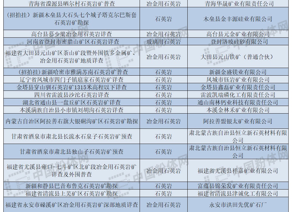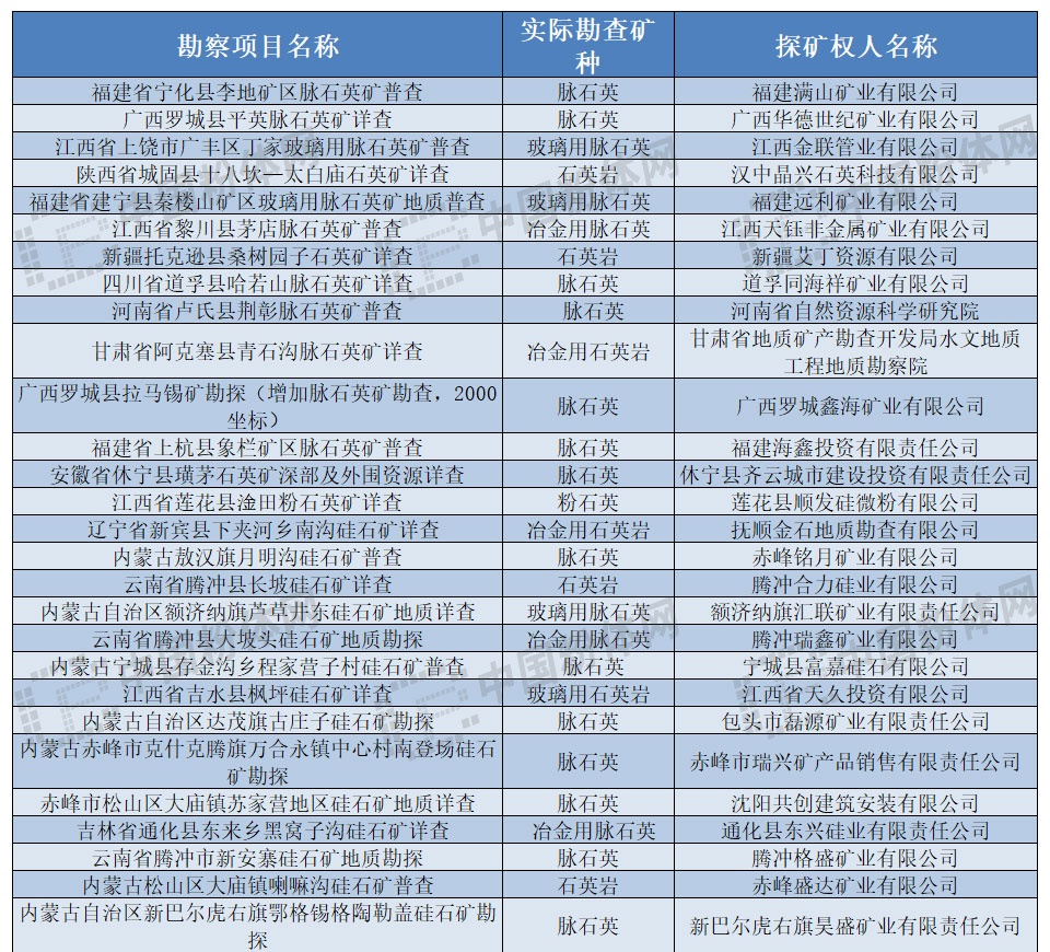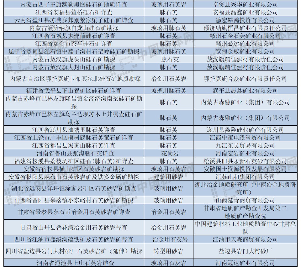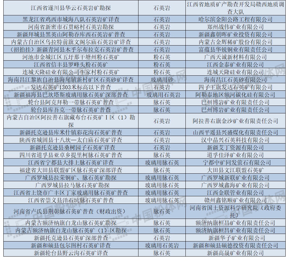 2021-2022年,國內(nèi)礦業(yè)權(quán)人勘查開采信息顯示,石英資源勘查主要圍繞脈石英、石英巖進行,并以山西、內(nèi)蒙、福建、江西、四川、新疆、廣西居多。