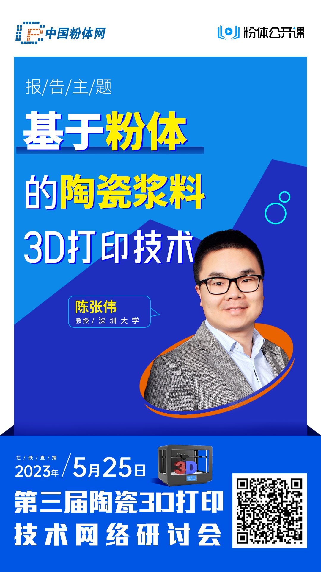 中國粉體網訊 中國粉體網旗下粉體公開課平臺將于5月25號舉辦第三屆陶瓷3D打印技術網絡研討會,為陶瓷3D打印從業者提供一個交流平臺。