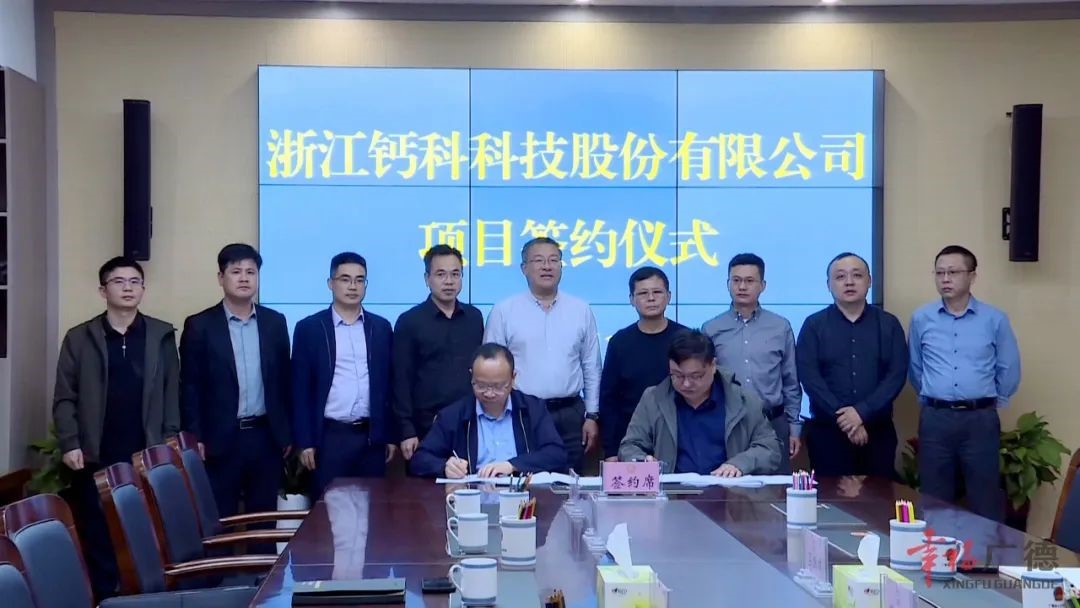 5月10日上午,安徽廣德市舉行浙江鈣科科技股份有限公司(以下簡稱:浙江鈣科)高品質鈣基深加工項目簽約儀式。該項目總投資額22.5億元,全面達產后可實現年產值20億元,年繳納稅額約3億元。