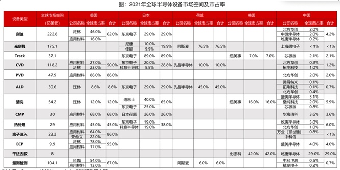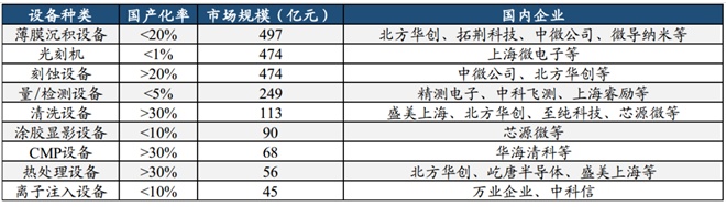 但整體來看,半導體設備國產化率仍處于低位。