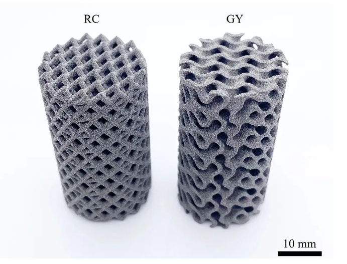 為了說(shuō)明此種工藝在制造復(fù)雜零件形狀上的優(yōu)勢(shì),Pelanconi 的研究集中在兩種具有不同拓?fù)浣Y(jié)構(gòu)的圓柱形多孔結(jié)構(gòu):旋轉(zhuǎn)立方體和陀螺儀。在用Sintratec PA12 打印并隨后轉(zhuǎn)化為陶瓷后,所得部件表現(xiàn)出出色的機(jī)械和熱性能,盡管零件收縮了約 25%,但它們?nèi)匀槐3至嗽夹螤睿瑳](méi)有變形或宏觀裂紋。根據(jù) Pelanconi 的說(shuō)法,通過(guò)進(jìn)一步的工藝優(yōu)化,可以使得雙軸強(qiáng)度提高165MPa 。