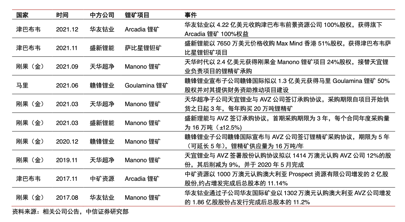 有鋰行業資深人士表示,非洲的鋰輝石礦的資源對中國企業而言實際上是未來的一個增長點,是未來去介入的一個很好的領域。自2021年開始,中資企業大規模進入到非洲大陸的鋰礦項目,盛新鋰能、華友鈷業、中礦資源相繼公告收購津巴布韋的鋰礦資產。贛鋒鋰業、雅化集團、康隆達、海南礦業、協鑫能科等中資企業陸續簽署非洲收購鋰礦股權或簽署包銷協議。此外,去年5月底,有市場消息稱,比亞迪在非洲覓得6座鋰礦礦山,均已達成收購意向。