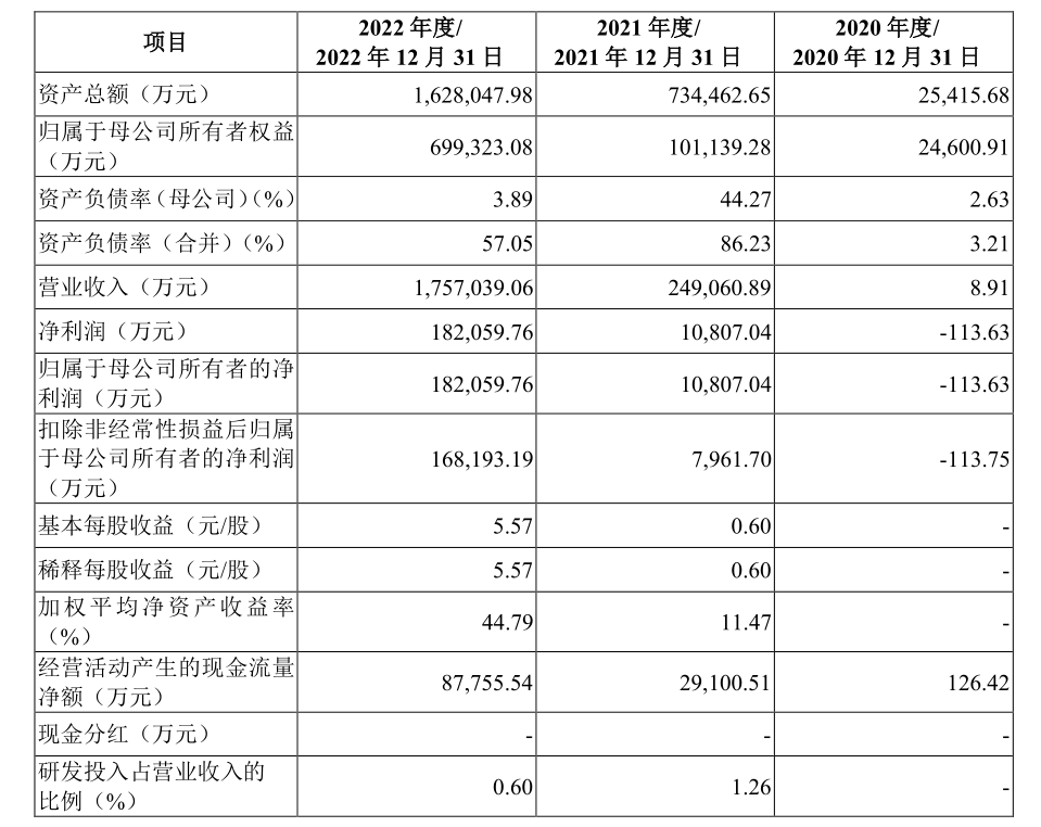 高景太陽能2020年-2022年主要財(cái)務(wù)數(shù)據(jù)及財(cái)務(wù)指標(biāo)