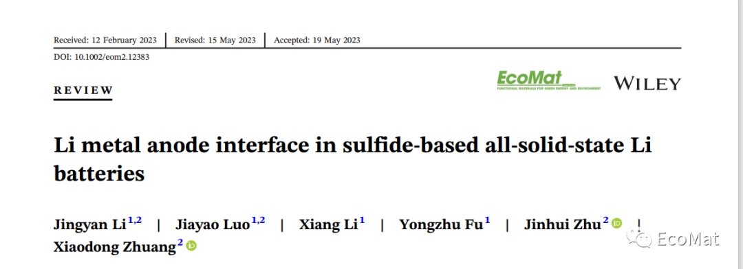 JingyanLi,JiayaoLuo,XiangLi,YongzhuFu,*JinhuiZhu,*andXiaodongZhuang*Limetalanodeinterfaceinsulfide-basedall-solid-stateLibatteries,EcoMat,2023;e12383.