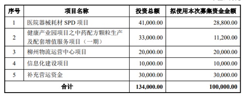 中國粉體網(wǎng)訊 6月14日,廣西柳藥集團股份有限公司發(fā)布向特定對象發(fā)行A股股票證券募集說明書(申報稿)。該公司本次向特定對象發(fā)行股票募集資金總額不超過人民幣100000.00萬元(含本數(shù)),扣除發(fā)行費用后的募集資金凈額擬用于以下項目: