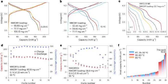 圖6|硬碳穩定化Li-Si合金負極組裝高負載電池