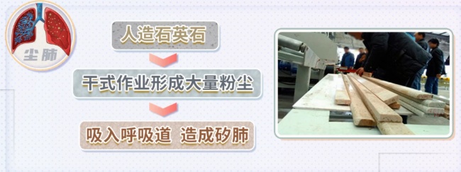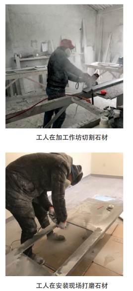 由于人造石英石二氧化硅含量高,在切割、打磨等加工安裝時多為干式作業,操作場所粉塵濃度很高,人造石英石粉塵導致的工人矽肺病在世界各地已多次見報道,嚴重影響勞動者生命健康,引起專家和學者的關注。