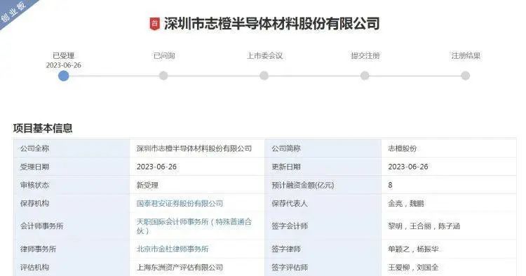 中國粉體網訊 6月27日,深圳市志橙半導體材料股份有限公司(以下簡稱:志橙半導體)在深市創業板提交招股書申報稿,保薦人為國泰君安。志橙半導體本次擬募資8億元,用于SiC材料研發制造總部項目、SiC材料研發項目、發展和科技儲備資金。