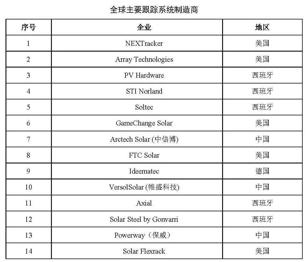 中國跟蹤支架的應用可以追溯到領跑者項目,但早期的跟蹤支架產品質量,可靠性層次不一,使得早期的項目故障頻發,一部分業主對跟蹤支架留下了較差的印象。反觀海外市場,NEXTracker、Array Technologies、PV Hardware等國外龍頭企業起步較早,經歷了一系列測試以及技術和項目的沉淀,產品進入成熟期,長期占據跟蹤支架龍頭地位。從全球近年出貨情況來看,跟蹤支架企業更符合本地化趨勢,全球出貨較為領先的跟蹤支架企業均聚集在美國(5家),歐洲(6家)和中國(3家)。并且,中國跟蹤支架企業與國際品牌仍存在一定的差距,但伴隨未來幾年特高壓線路,“光伏+”場景的植入,必將帶動中國跟蹤支架企業縮小與海外頭部企業之間的差距。