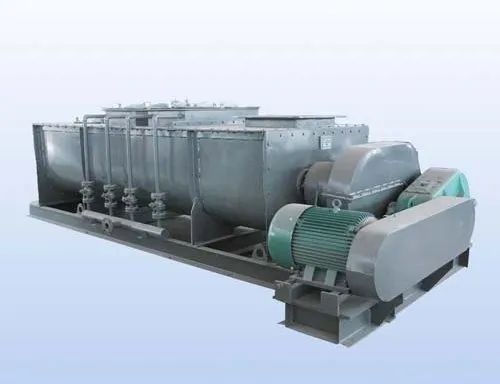 當物料由進料口進入機體后,由于主軸的轉動使裝在主軸上帶有一定角度的多組葉片旋轉,物料經過充分拌和后由出料口輸送到下一工序,或用運輸機械裝運。