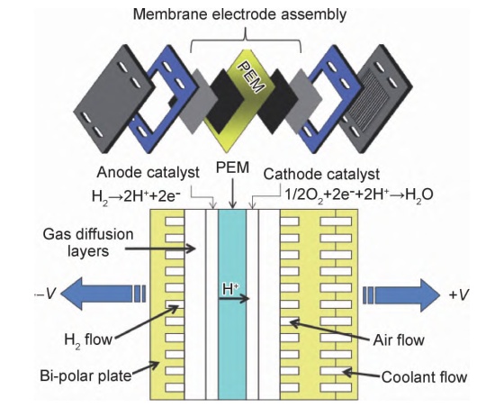 質子交換膜燃料電池的組成示意圖