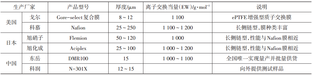 國內外氫燃料電池質子交換膜產品參數