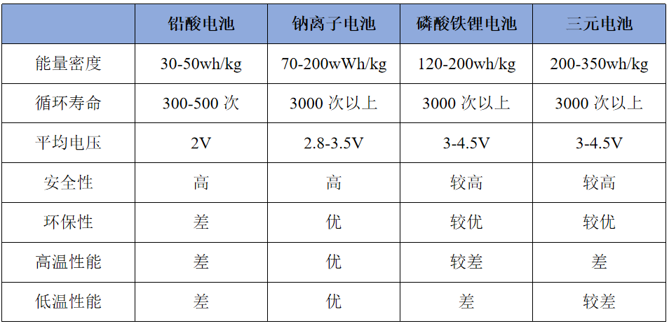 不同電池性能對(duì)比(來(lái)源:公開(kāi)資料整理)
