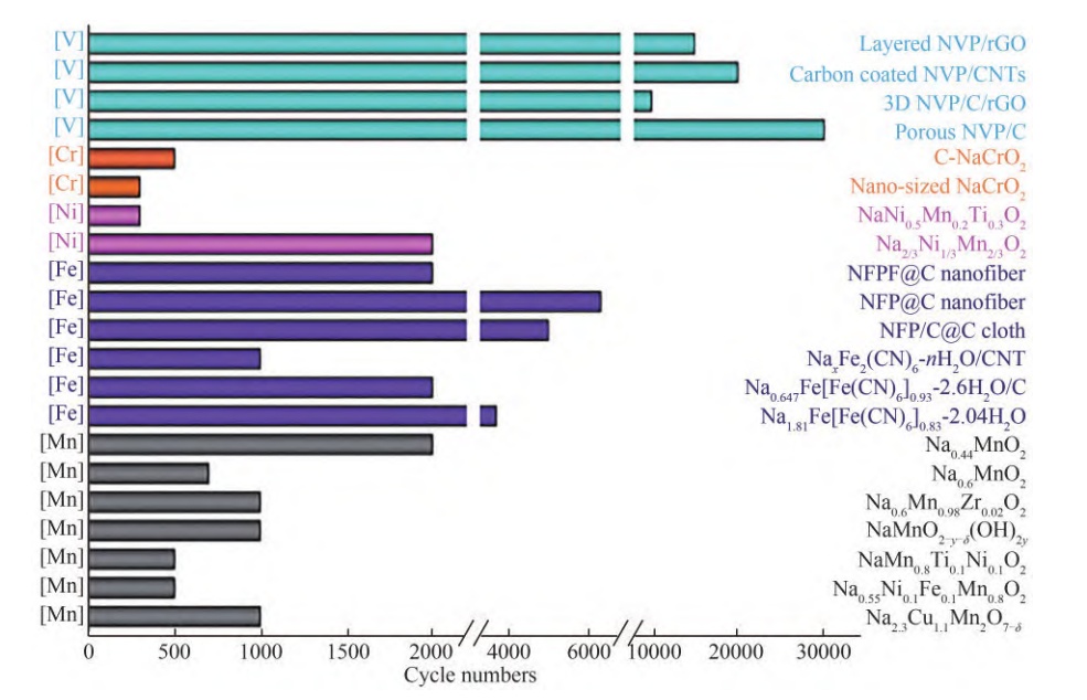 NaxMn1-yMyO2材料一般可分為層狀結構和隧道結構,層狀NaxMn1-yMyO2(0<x≤1)材料由于其鈉含量高能夠提供較高的比容量而得到廣泛研究。但其在儲存和充放電過程中容易發生不可逆的相結構變化,導致材料穩定性和循環性能不佳;再者,正極/電解液界面反應的存在會直接作用于正極材料,該過程導致的結構改變、產生的新物質會對電池充放電過程產生不利影響;此外,材料中存在的Na+/空位有序排列會導致材料在充放電過程產生復雜的氧化還原峰,阻礙鈉離子的傳輸速率進而影響倍率性能和循環穩定性。