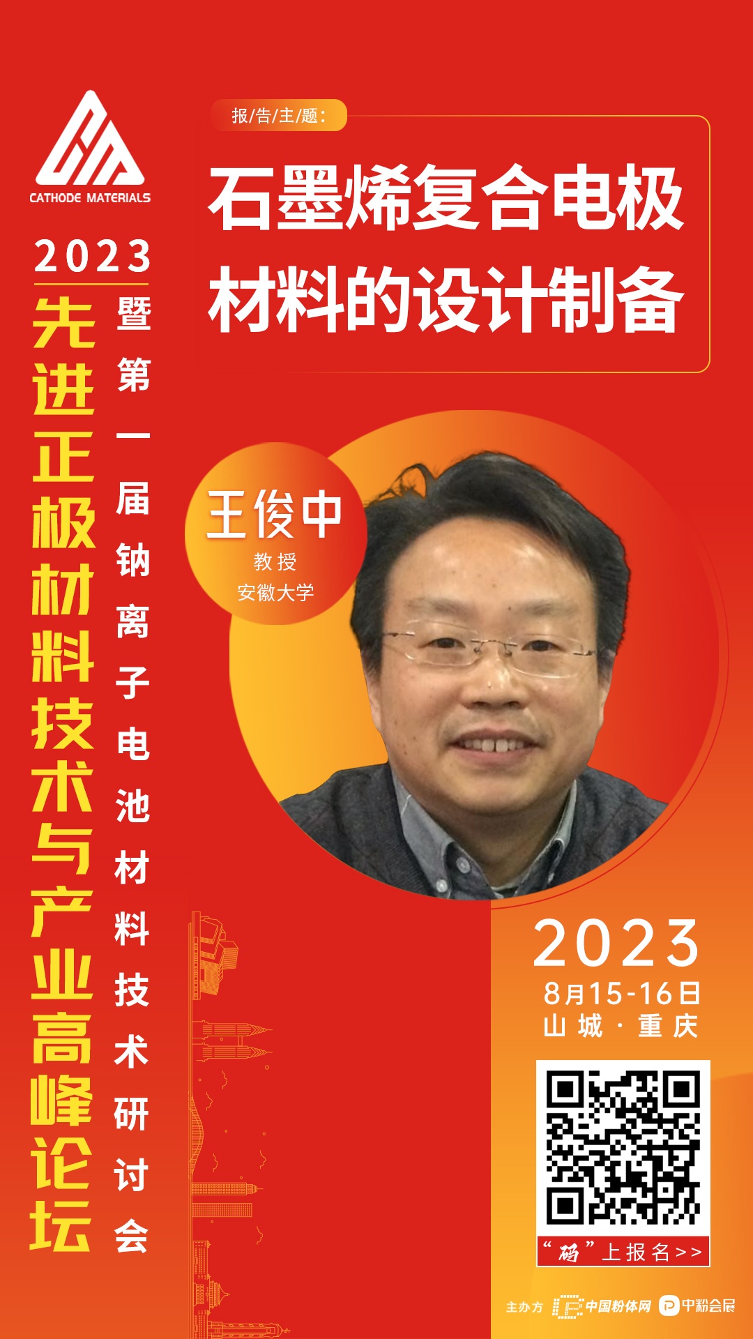 2023年8月,中國粉體網將在山城重慶舉辦“2023先進正極材料技術與產業高峰論壇暨第一屆鈉離子電池材料技術研討會”。我們有幸邀請到安徽大學的王俊中教授為我們帶來題為《石墨烯復合電極材料的設計制備》的報告。