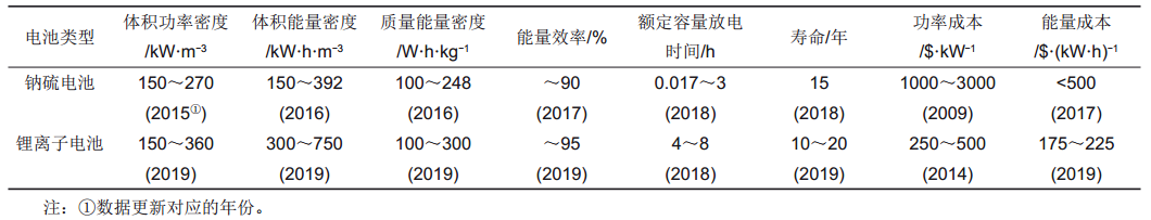 鈉硫電池與鋰離子電池應(yīng)用于儲能的主要技術(shù)參數(shù)