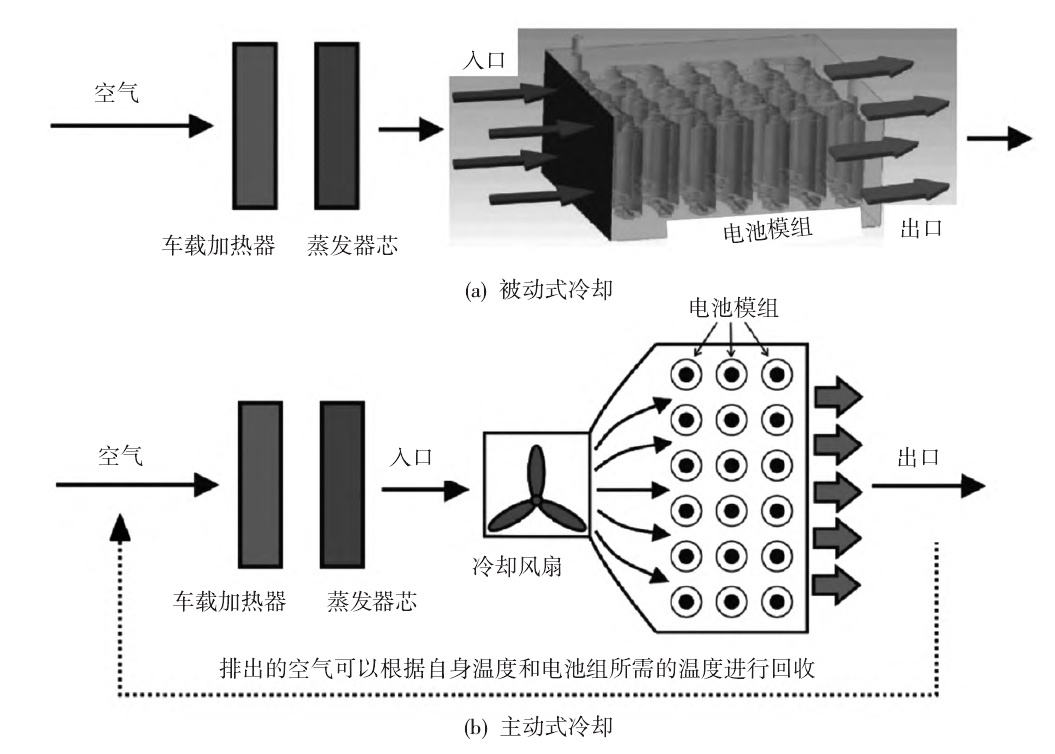 風冷技術結構示意圖(來源:黃沅輝等,《淺析新能源汽車動力電池熱管理技術》)