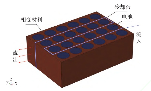 電池混合冷卻模組結構圖(來源:姜鑫鑫等,《相變材料和液冷結合的鋰離子電池熱管理性能優化》)