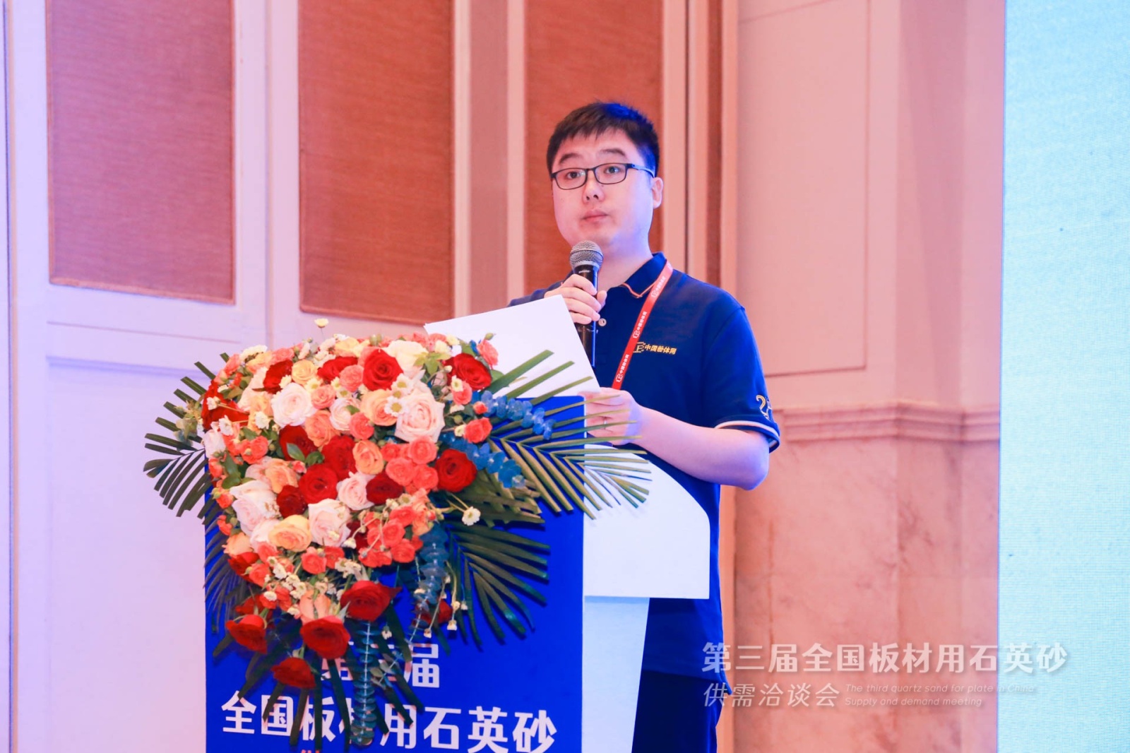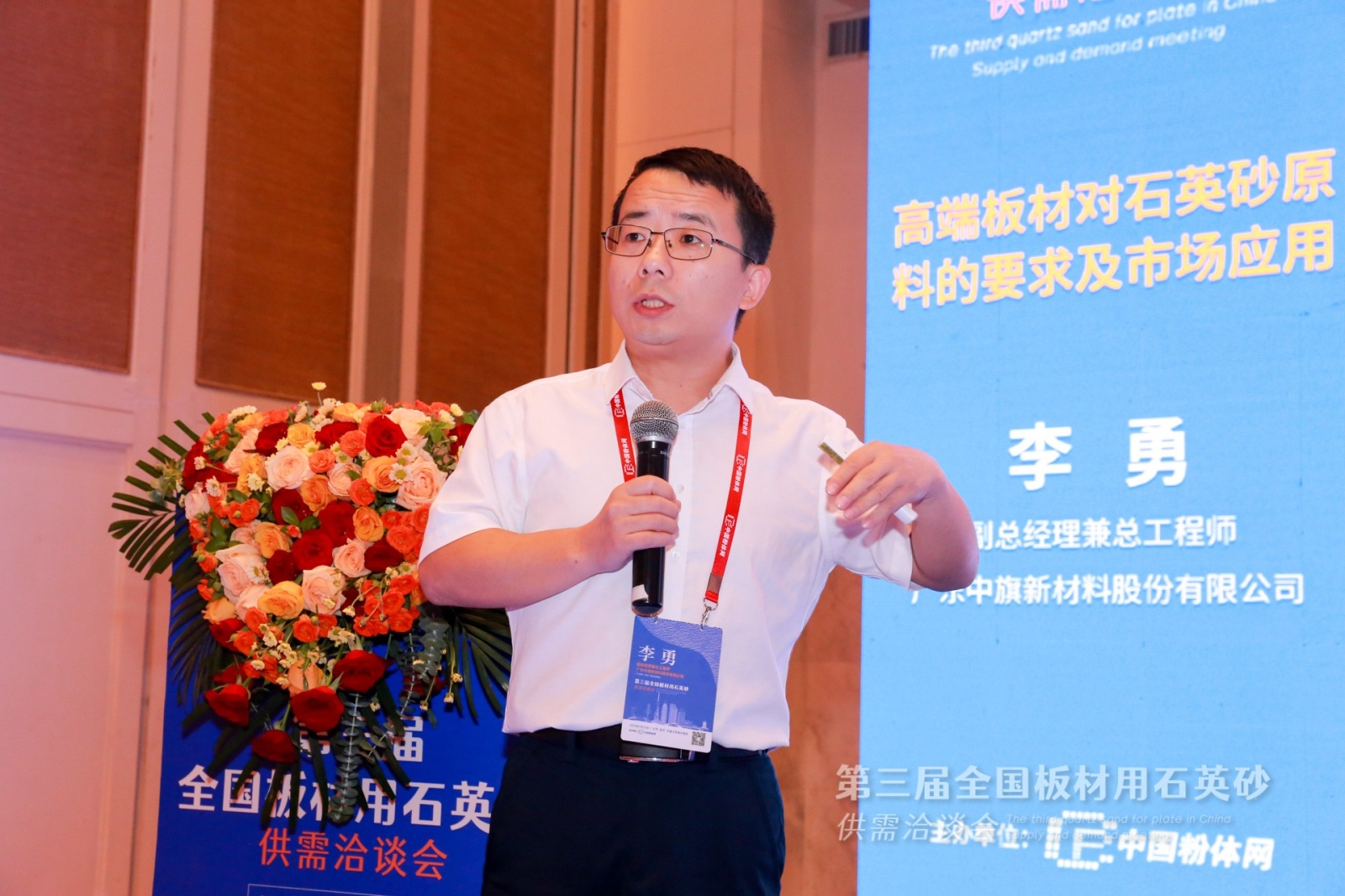 廣東中旗新材料股份有限公司副總經理兼總工程師李勇作《高檔板材對石英砂原料的要求及市場應用》報告