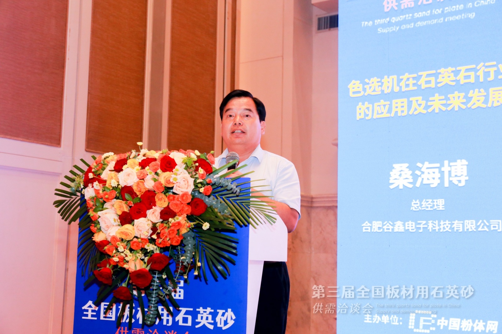 合肥谷鑫電子科技有限公司總經理桑海博作《色選機在石英石行業(yè)的應用及未來發(fā)展》報告