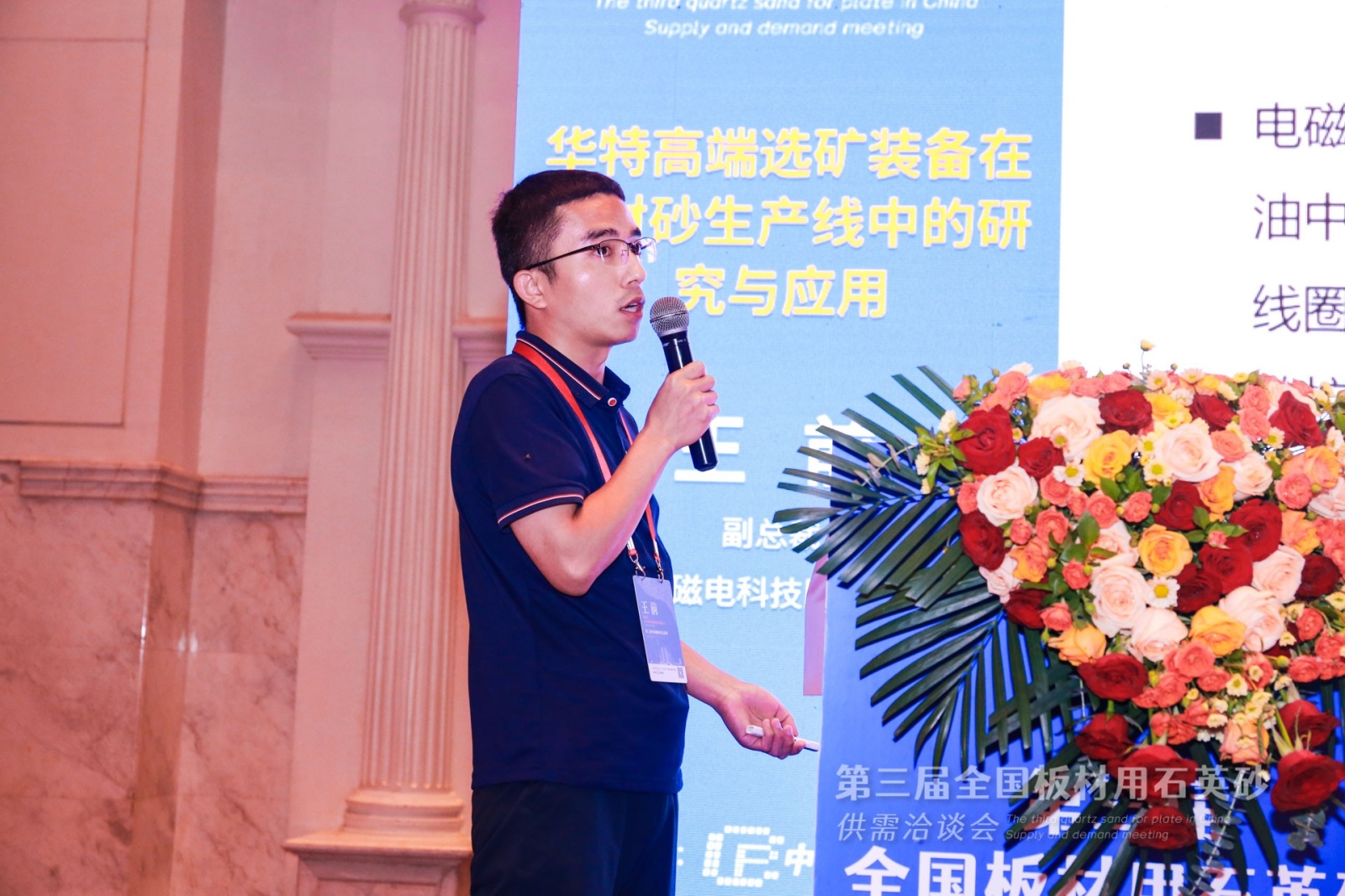 山東華特磁電科技股份有限公司副總裁/博士/正高級工程師王前(安峰文博士代)作《華特高端選礦裝備在板材砂生產線中的研究與應用》報告