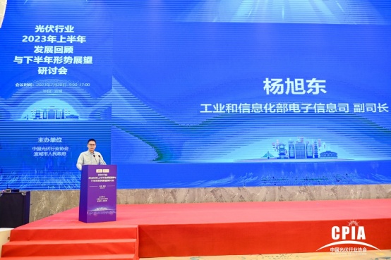中國粉體網訊 2023年7月20日,工業和信息化部電子信息司副司長楊旭東出席光伏行業2023年上半年發展回顧與下半年形勢展望研討會并致辭。