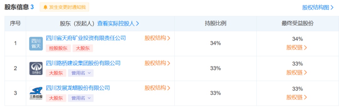 其中,天府礦投為四川省自然資源廳全資控股的四川省自然資源投資集團的全資子公司,川發(fā)龍蟒、四川路橋的實際控制人都是四川省國資委。