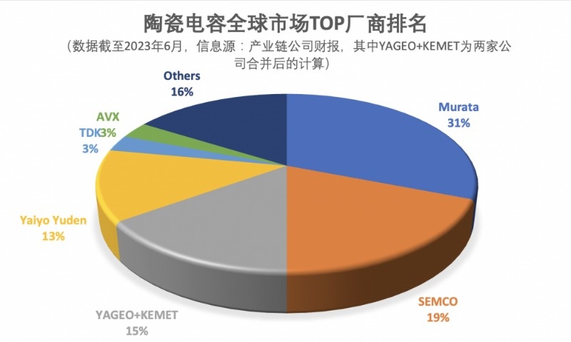 作為關鍵元部件,MLCC產業的發展和技術迭代也隨著電子產業的需求而變。第三方機構統計顯示,從市場份額看,MLCC領域以村田制作所(Murata,下稱“村田”)位居行業第一,隨著下半年多類下游市場需求陸續啟動,也將推動高端MLCC產品的拉貨動能。