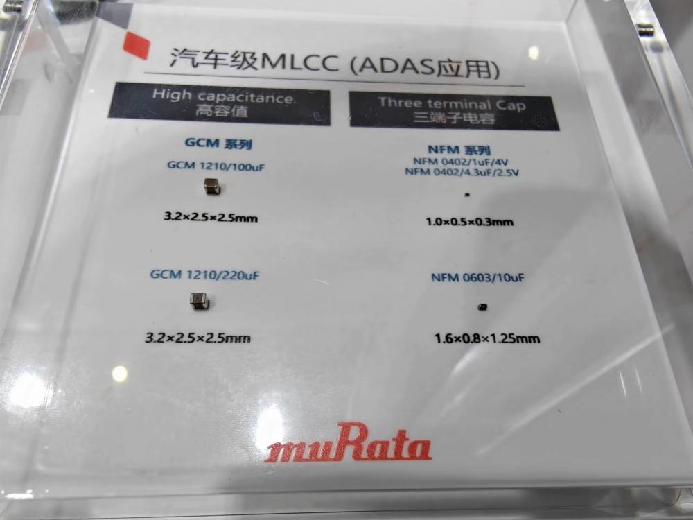 (村田在上海慕尼黑電子展上關于ADAS應用汽車級MLCC產品的部分展示,圖源:記者駱軼琪拍攝)