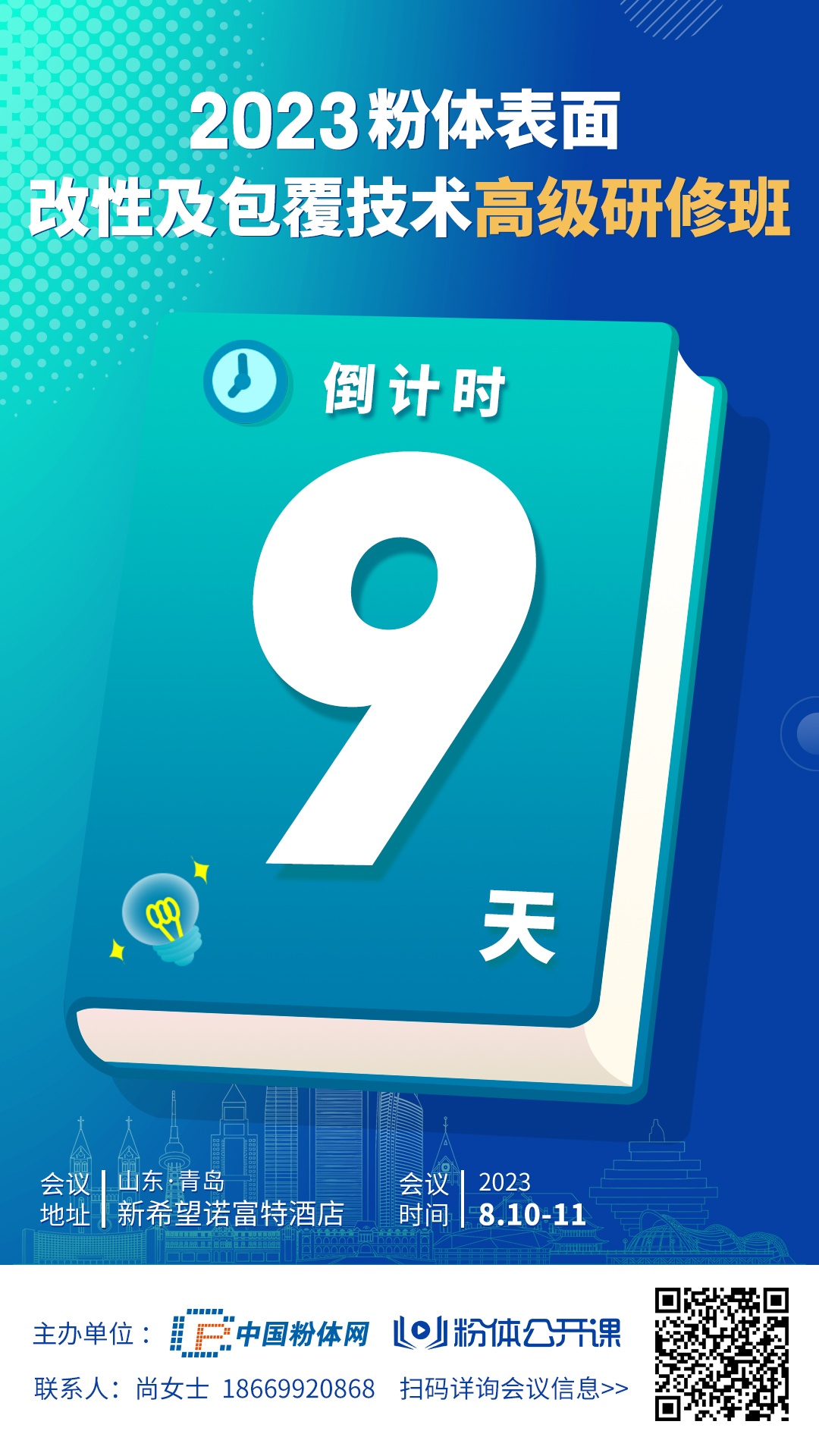 中國粉體網(wǎng)訊 由中國粉體網(wǎng)粉體公開課主辦的“2023粉體表面改性及包覆技術高級研修班”將于8月10號在山東青島舉辦,天津潤光恒科技開發(fā)有限公司邀您一同參加。