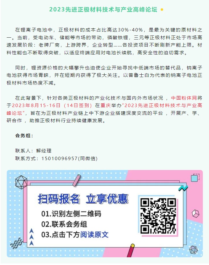 從2023先進正極材料技術與產業高峰論壇暨第一屆鈉離子電池材料技術研討會組委會獲悉,本屆會議將于2023年8月15-16日在重慶舉辦。北京新能源汽車股份有限公司邀請您共同出席。